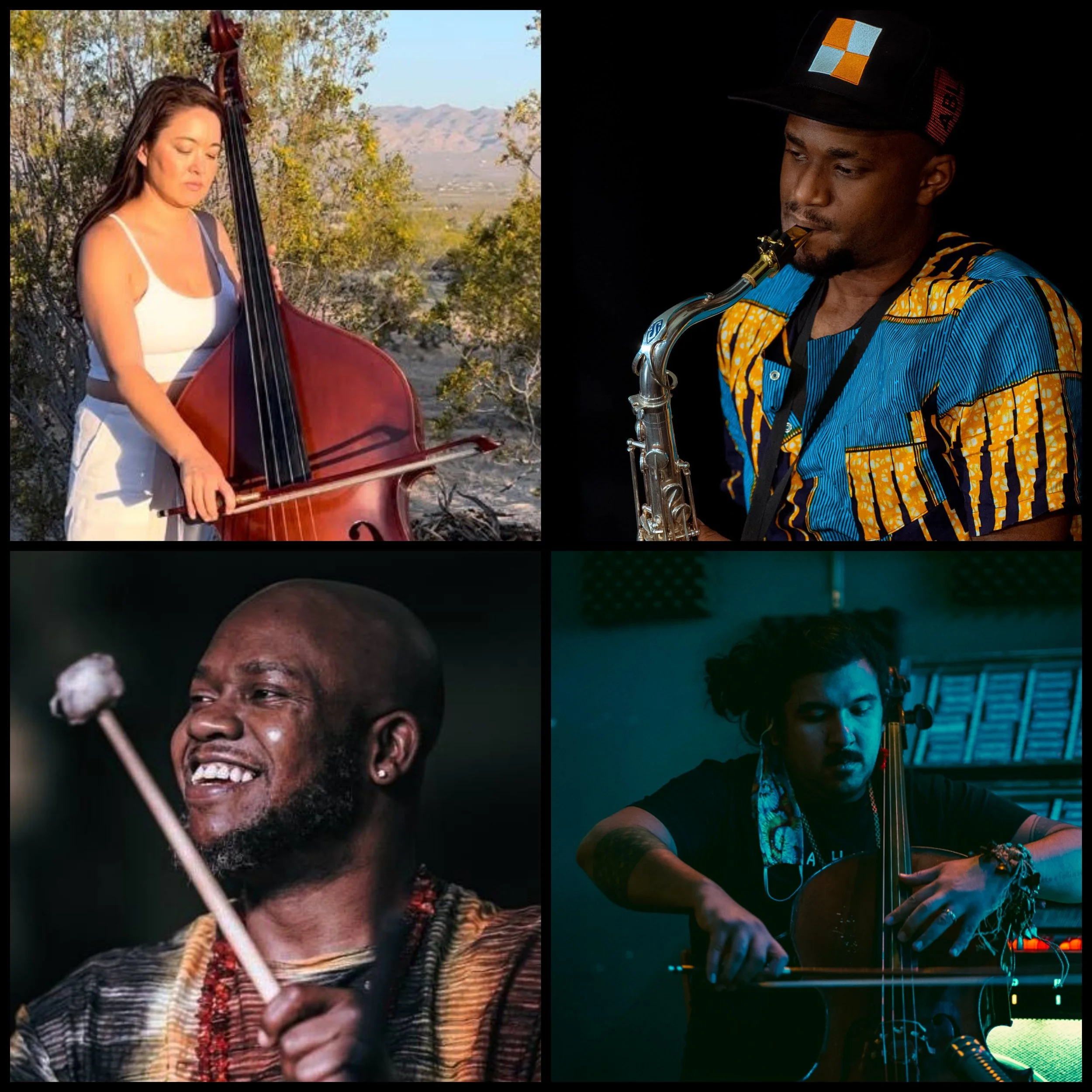 We welcome Mojave Desert based artist Maya Jensen with a quartet performance pairing Maya with saxophonists Luc Mosley, drummer Isaiah Spencer, and cellist Ishmael Ali.